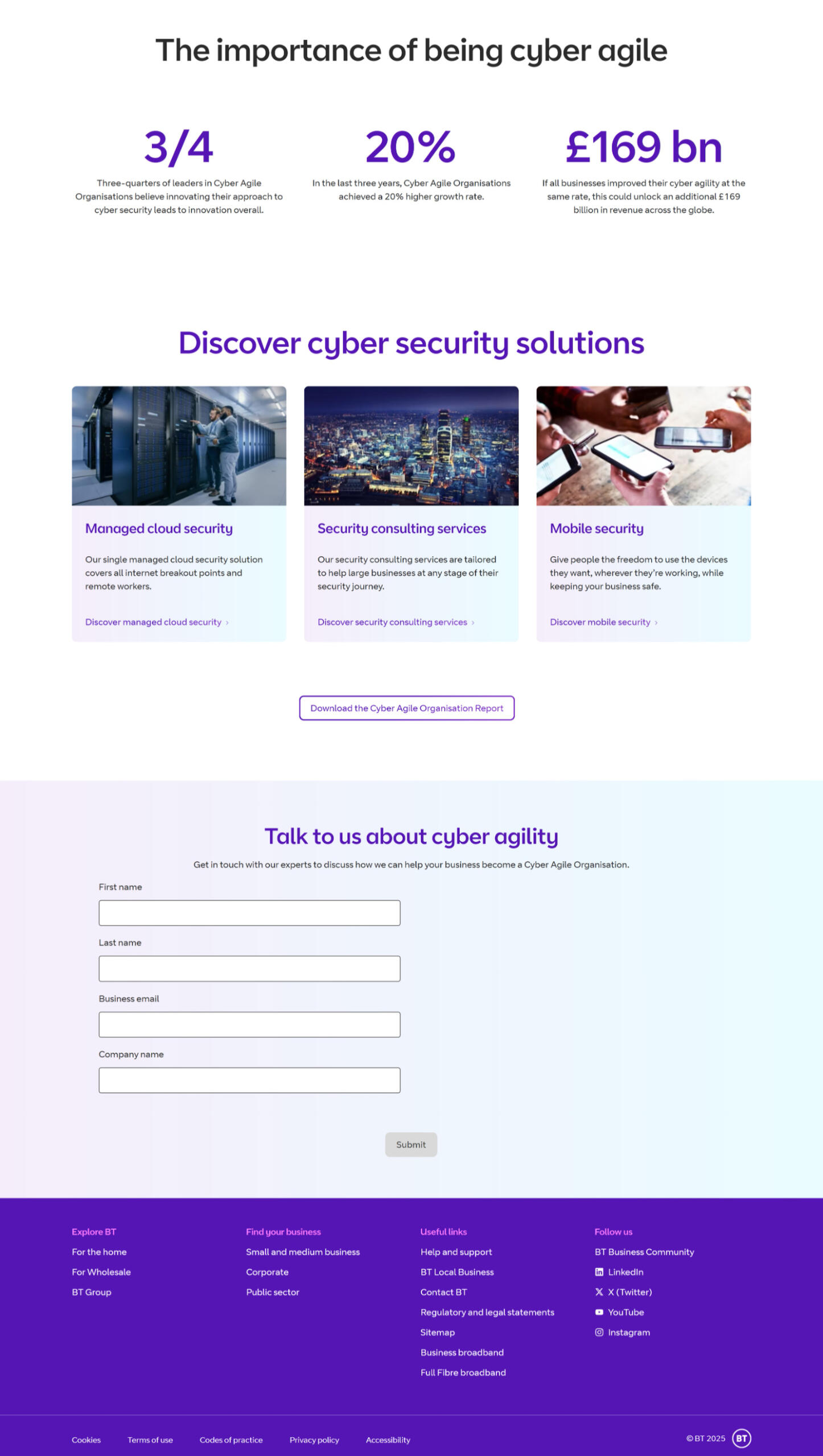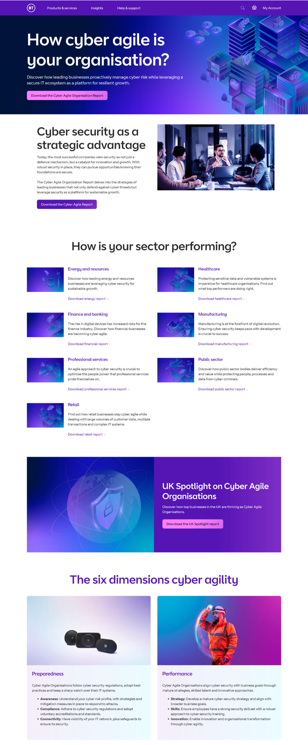 Design a new campaign landing page for BT's cyber agility report on a range of industries and sectors, driving awareness of the topic and positioning BT as a thought leader in the area.