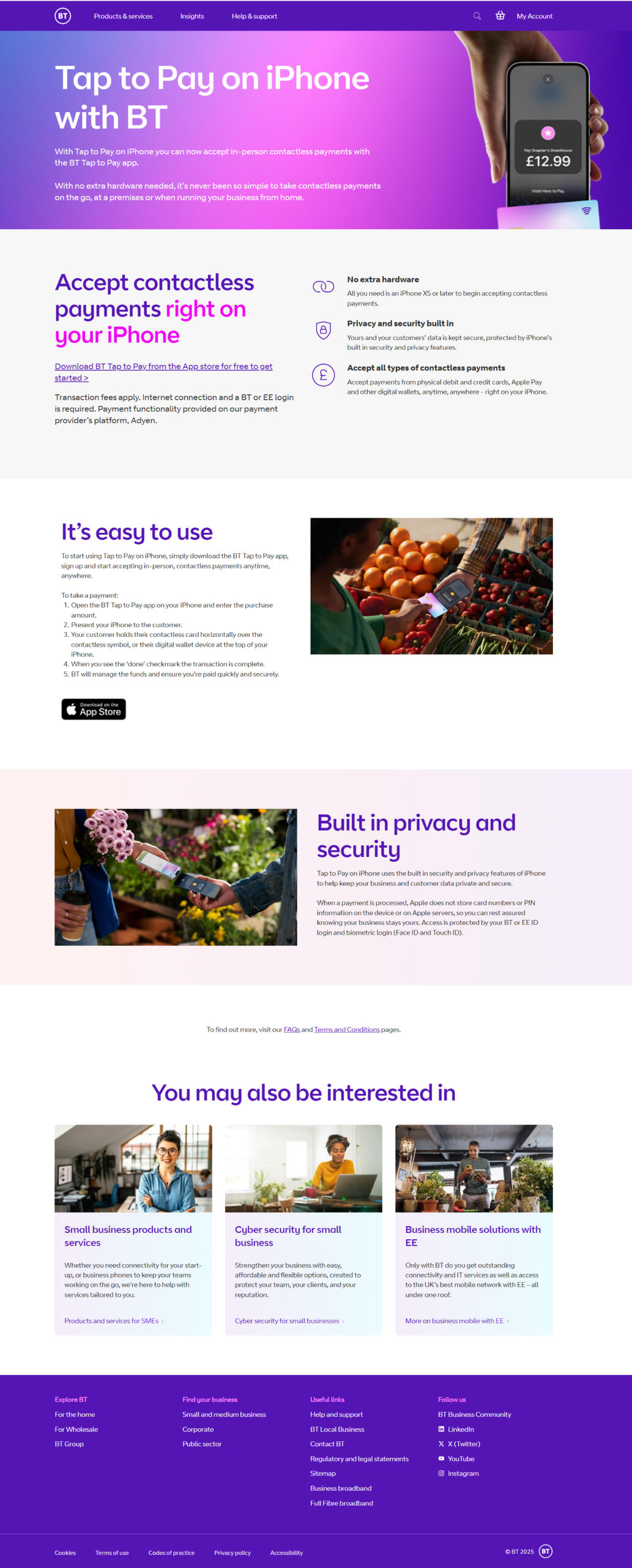 Landing page to support new product launch of BT's Tap to Pay for Apple.